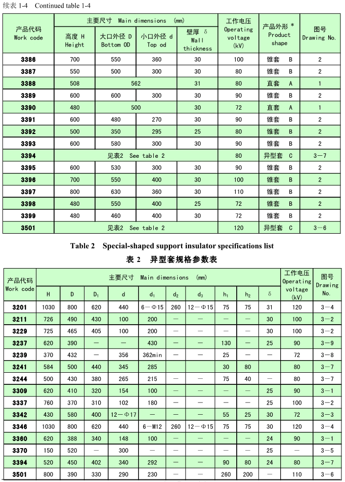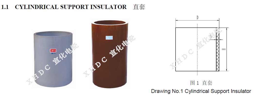 With different materials the ceramic support insulator can be used under the temperature ≤250℃ or ≤350℃ with the operating voltage ranging from 72kV to 120kV and a mechanical compressive failing load not less than 500kN.