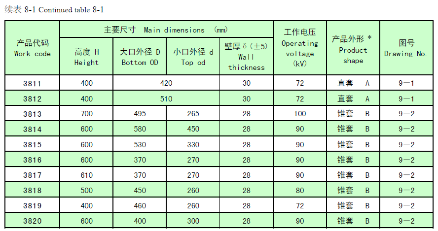 The 95A support insulator can be used under the temperature up to 600℃ with the operating voltage ranging from 72kV to 120kV and a mechanical compressive failing load not less than 1000kN.