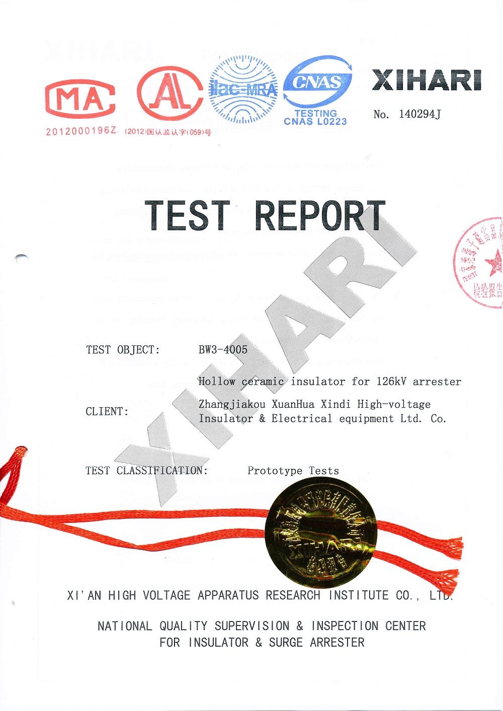 XIHARI Test Report--126kV Porcelain Hollow Insulator For Arrester