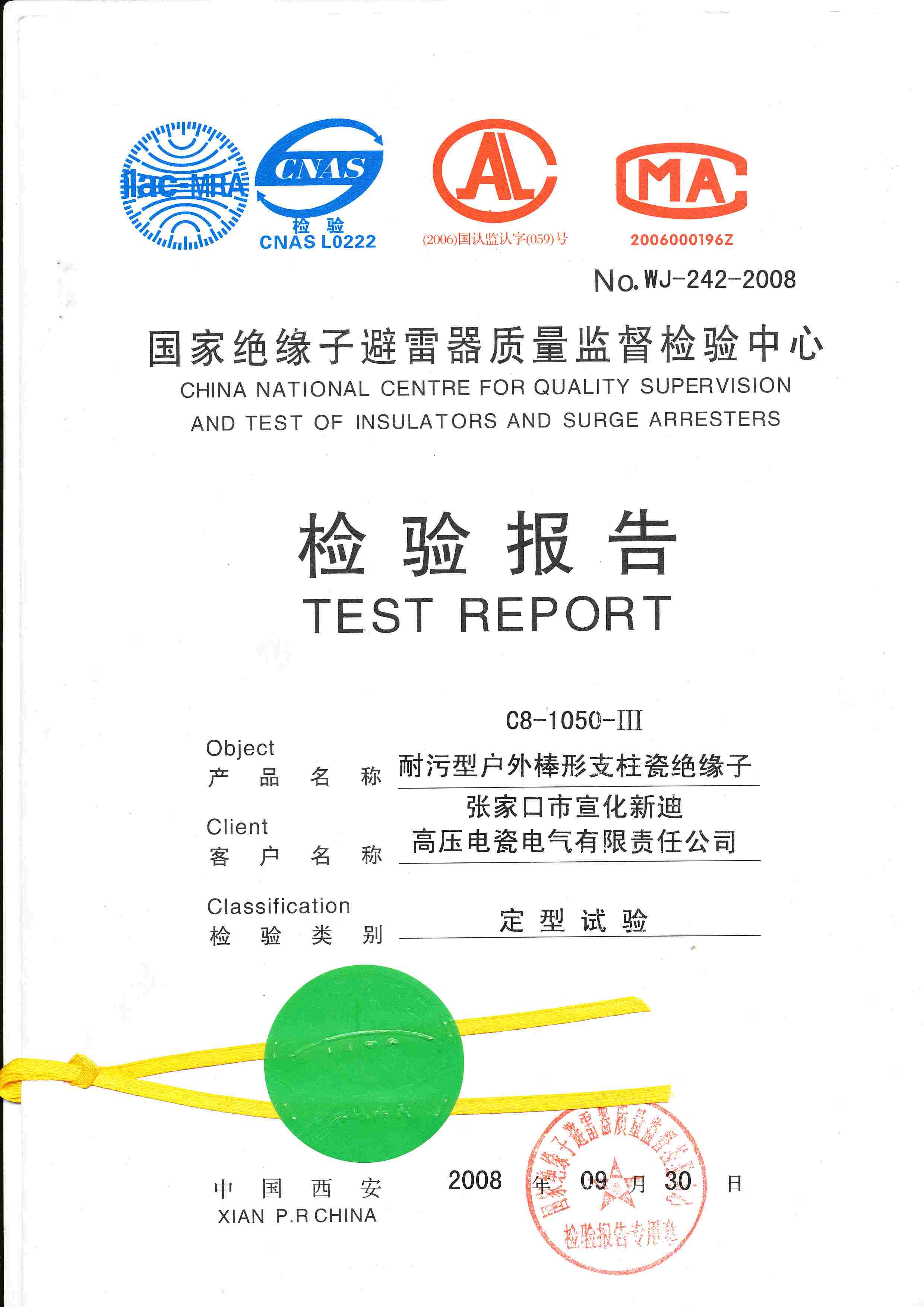 XIHARI Test Report--Anti-Pollution Type Outdoor Post Insulator