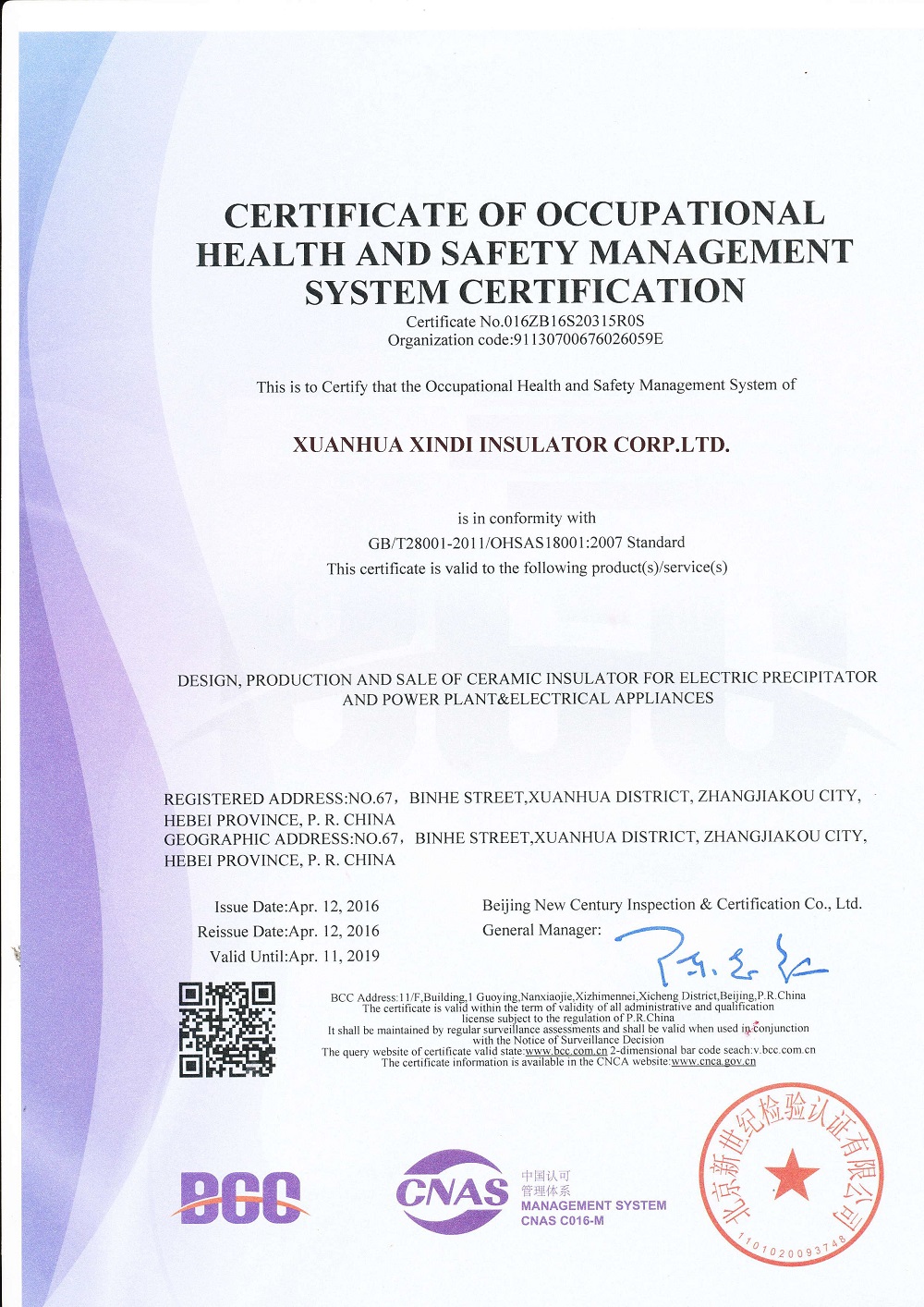 OHSAS18001 Certificate Of Occupational Health And Safety Management System