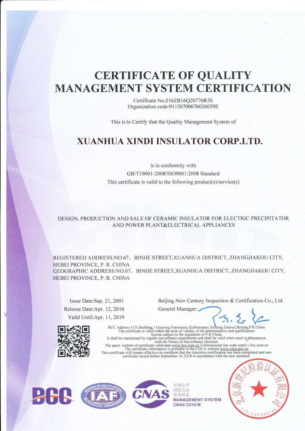 2012年12月,榮獲河北省中小企業(yè)名牌審定委員會(huì)“靜電除塵器用瓷絕緣子”名牌證書
