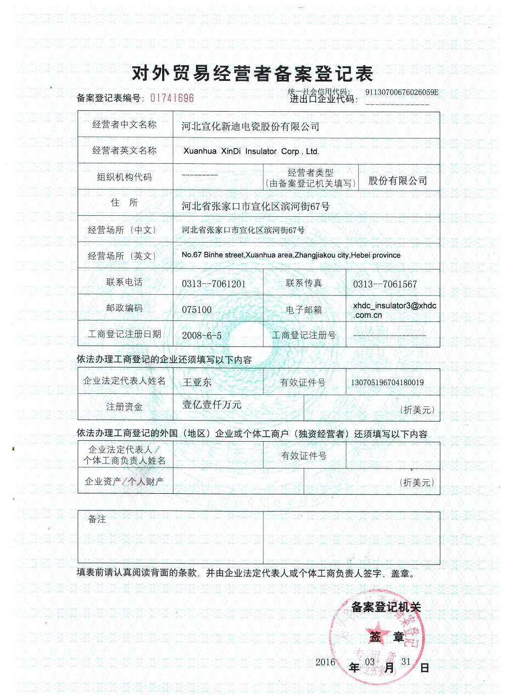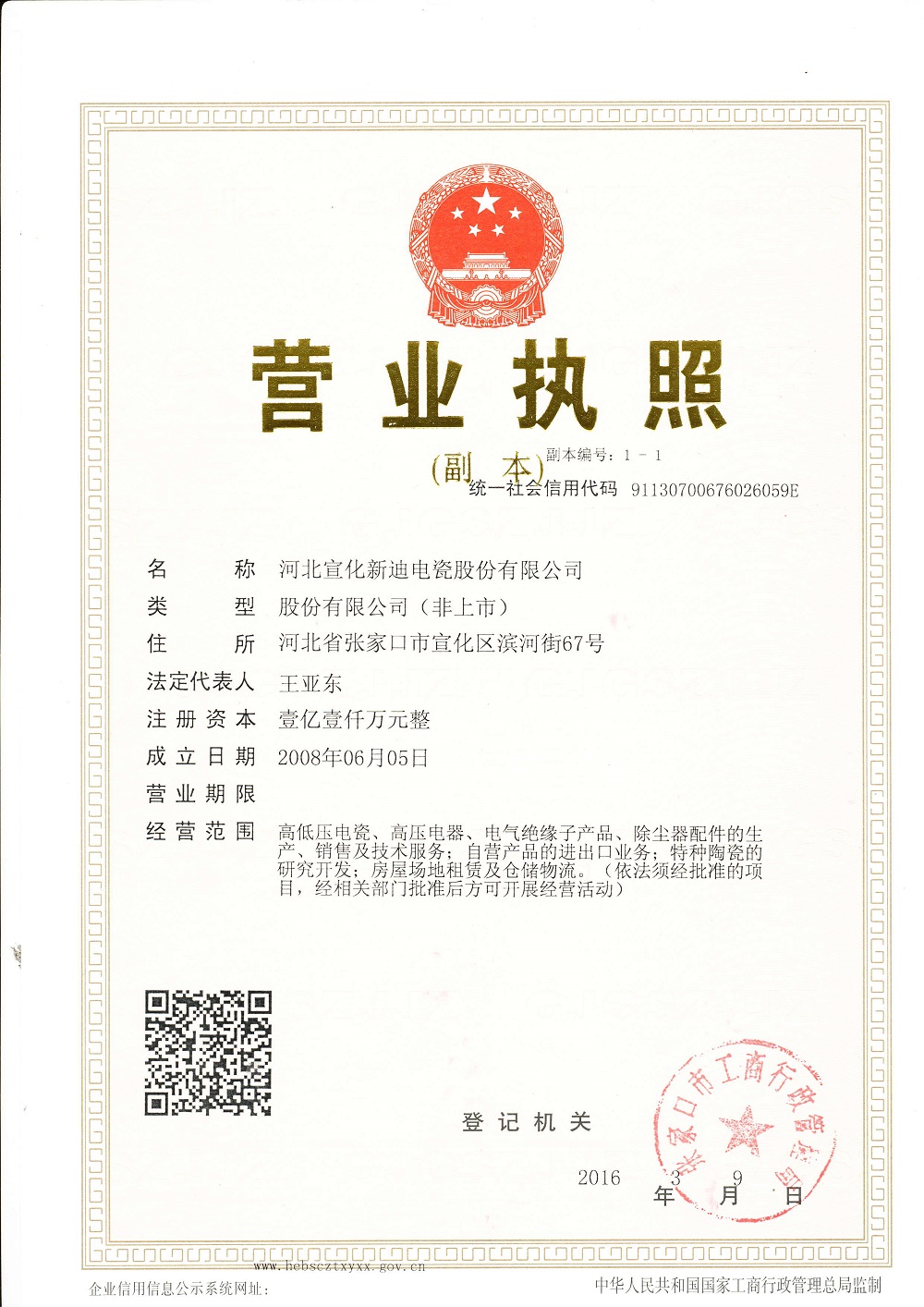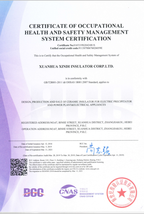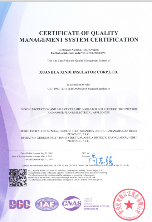 2017年2月,榮獲河北省中小企業(yè)靜電除塵器用瓷絕緣子”名牌證書"