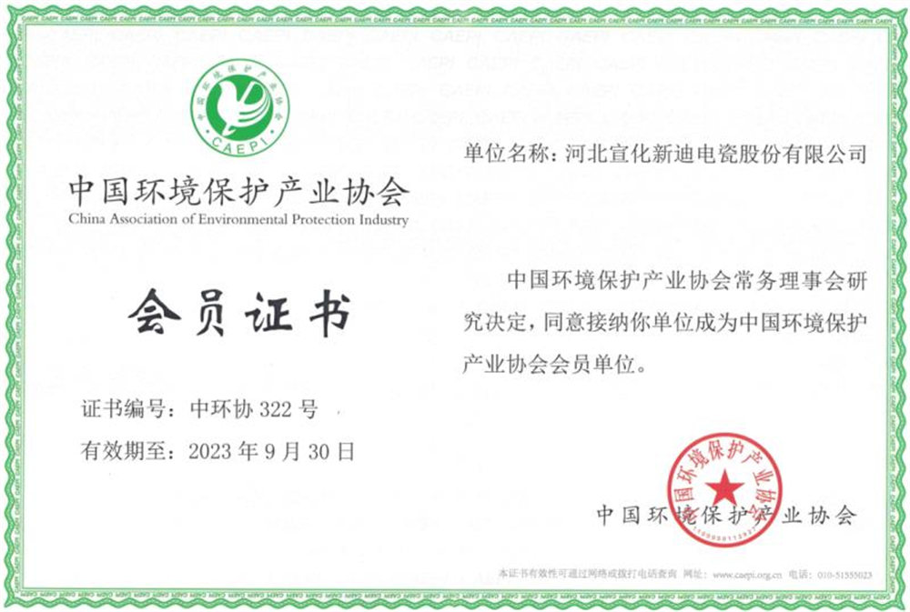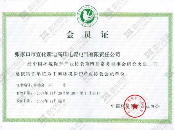 榮獲中國(guó)環(huán)境保護(hù)產(chǎn)業(yè)協(xié)會(huì)“會(huì)員證書”