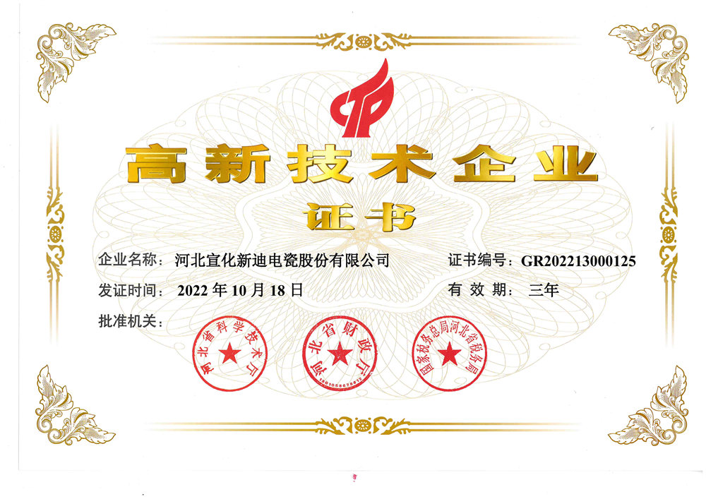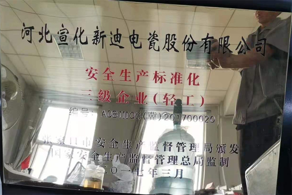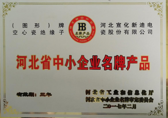 2017年2月,榮獲河北省中小企業(yè)靜電除塵器用瓷絕緣子”名牌證書"