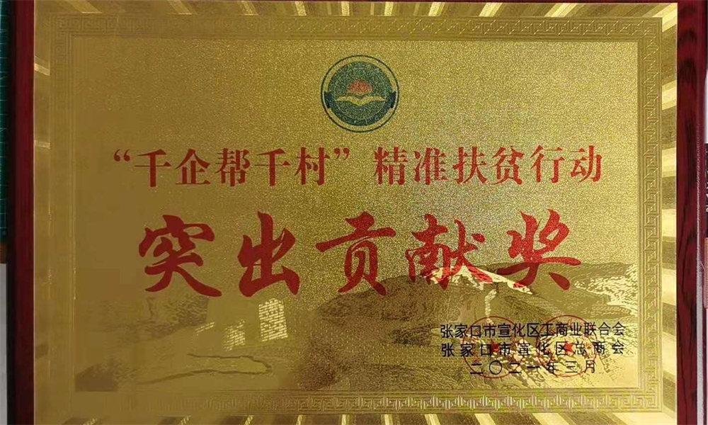 2021年3月,榮獲張家口市宣化區(qū)工商業(yè)聯(lián)合會(huì)“千企幫千村”精準(zhǔn)扶貧突出貢獻(xiàn)獎(jiǎng)
