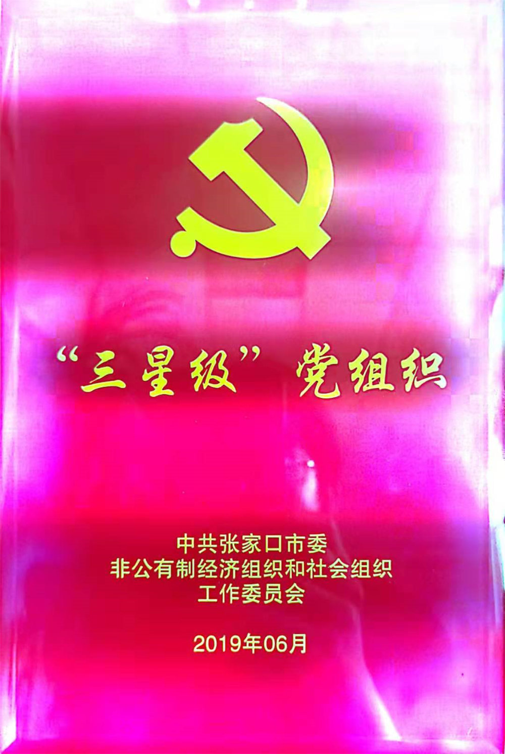 2019年6月,榮獲中共張家口市委非公有制經(jīng)濟(jì)組織和社會(huì)組織工作委員會(huì)“三星級(jí)”黨組織