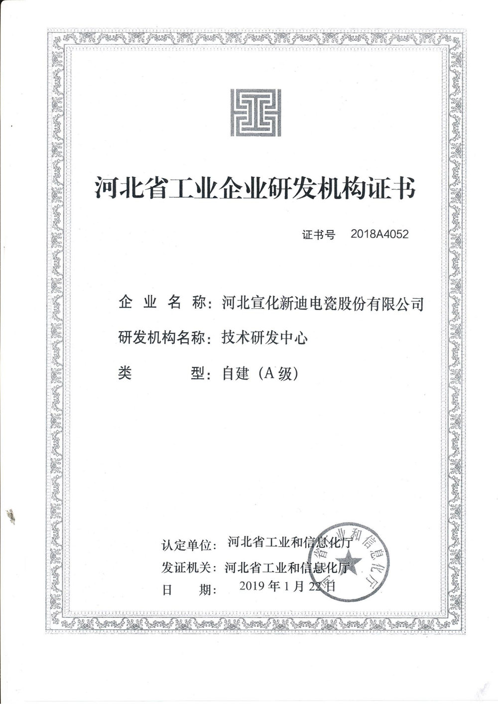 2019年1月,榮獲河北省工業(yè)和信息廳“技術(shù)研發(fā)中心”