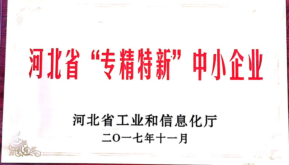 2017年11月,榮獲河北省工業(yè)和信息廳“專精特新”中小企業(yè)