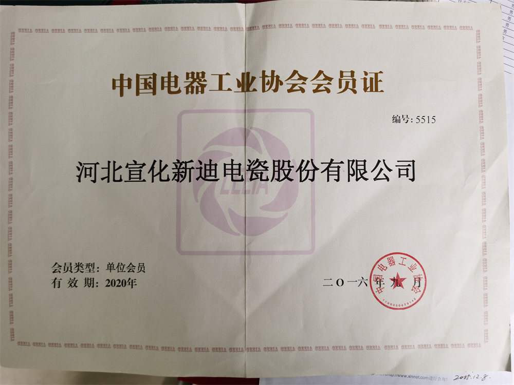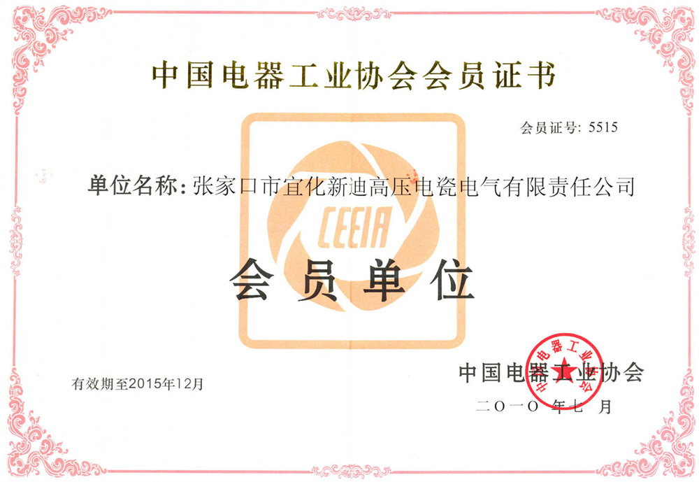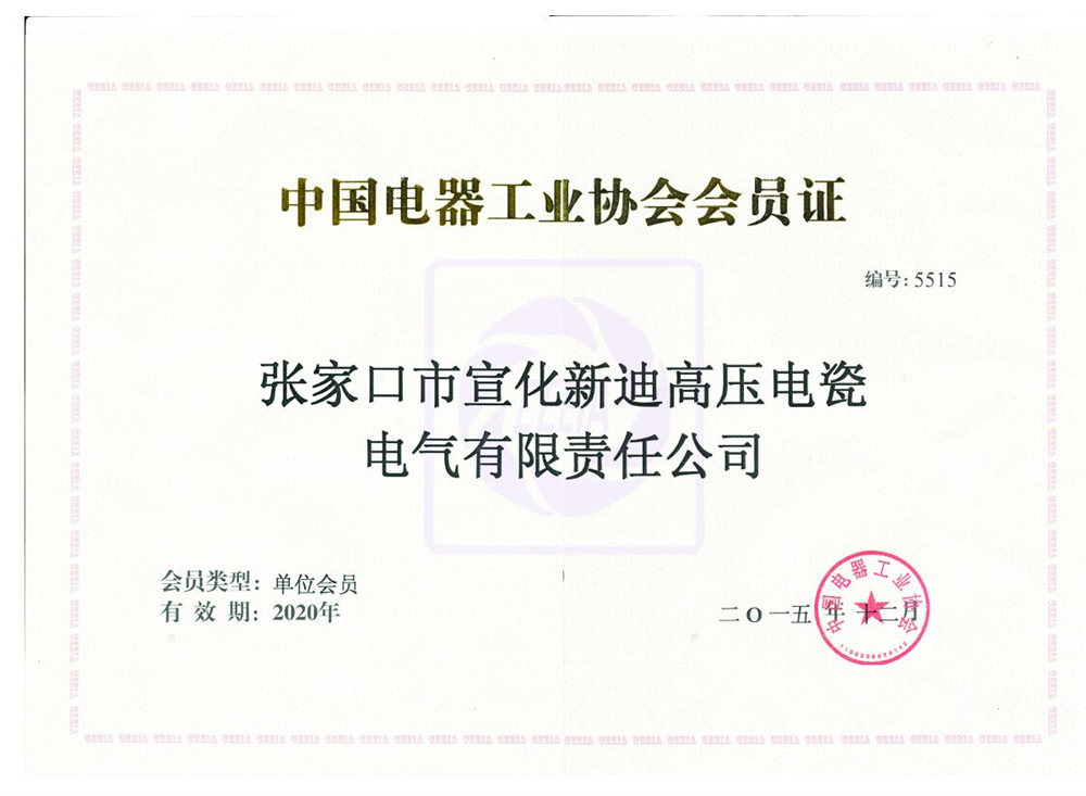 2015年12月,榮獲中國(guó)電器工業(yè)協(xié)會(huì)會(huì)員證