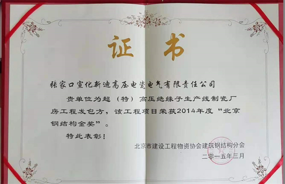 2015年3月,榮獲北京市建設(shè)工程物質(zhì)協(xié)會(huì)建筑鋼結(jié)構(gòu)分會(huì)“北京鋼結(jié)構(gòu)金獎(jiǎng)”
