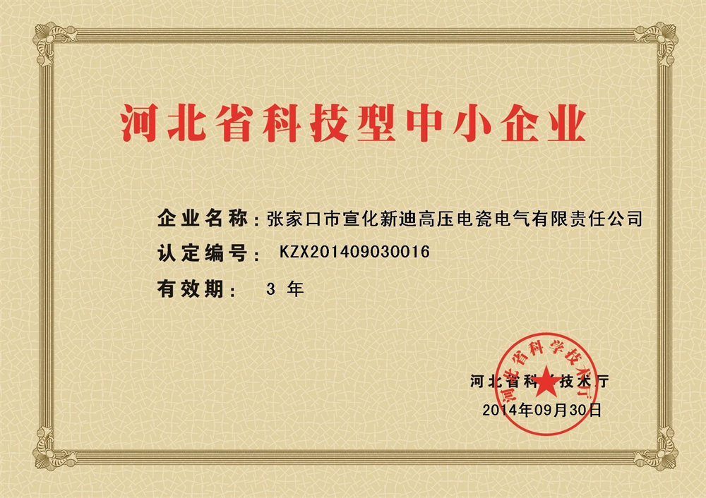 2014年9月30日,榮獲河北省科學(xué)技術(shù)廳“河北省科技型中小企業(yè)”
