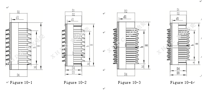 耐污型及耐重污型瓷套的傘形采用了經人工污穢試驗優(yōu)選的大小傘相間的平傘形結構和傘下帶棱的傘形結構,傘形設計完全符合lEC60815,由于小傘處于大傘的保護之下不易受污染,且大傘間間距較大,改善了傘間放電特性,提高了瓷套的耐污性能。有的瓷套還設計了帶斷水傘的結構。經污穢試驗及長期運行,我公司生產的瓷套可適用于0.036~0.15 mg/cm2鹽密條件下使用。